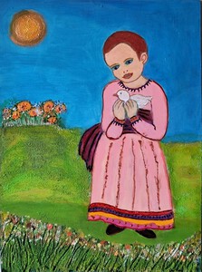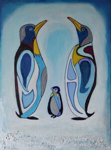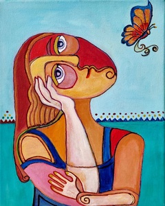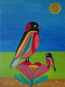 2016Vogels. Symbool voor de vrije geest, tevens een hommage aan Escher. Acryl met gemengde technieken