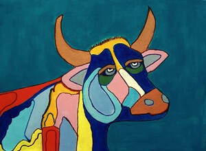 2019In opdracht schilderclub Magenta (Woerden) schilderij van Kandinsky aangepast met andere kleuren en achtergrond.
