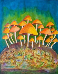 2015Zonneschijf. Acryl met mixed media Is tentoongesteld in Gorcums Museum (zie exposities)