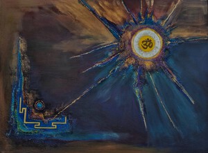 2014Om de zon. De Eeuwige Cirkel van het leven. Acryl en goudpasta op doek.