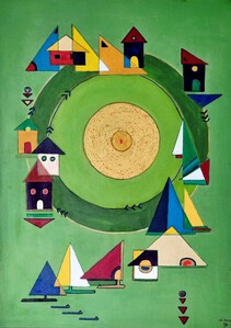 2012Russische motieven in een hommage aan Kandinsky. Acryl op doek.